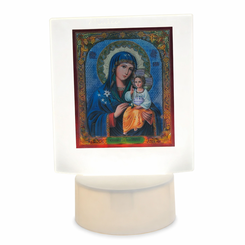 Dimensiunile compacte o fac ușor de amplasat pe noptieră, masă sau raft, iar efectul luminos evidențiază detaliile icoanei într-un mod elegant și discret. Este o alegere inspirată atât pentru uz personal, cât și ca dar cu semnificație religioasă.